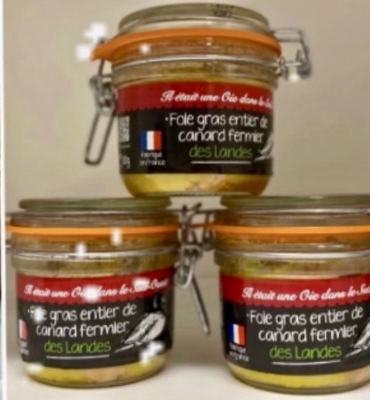 La recette traditionnelle du foie gras. Juste assaisonné cuit en terrine au bain marie. Vendu sous vide, environ 500g.